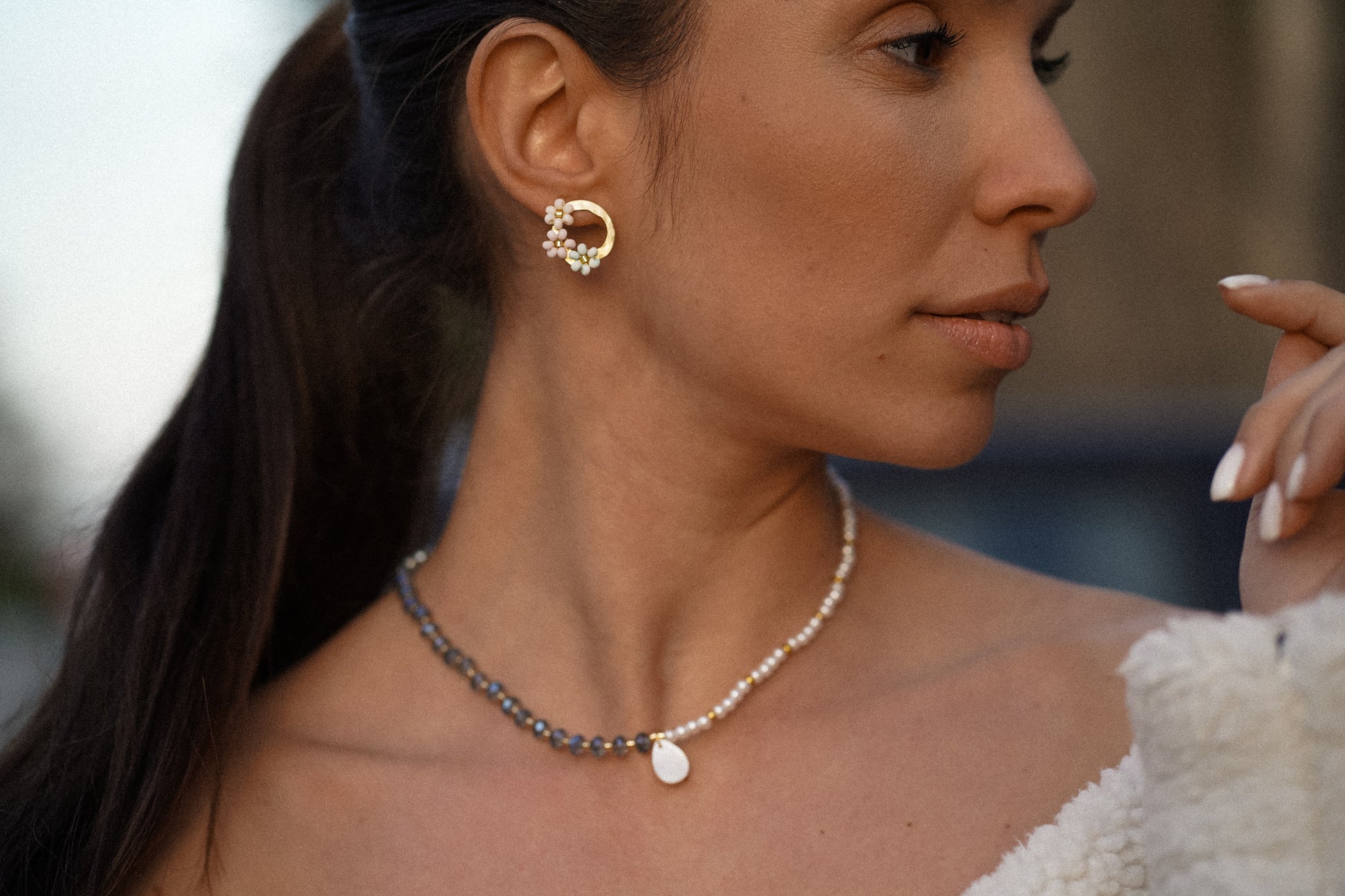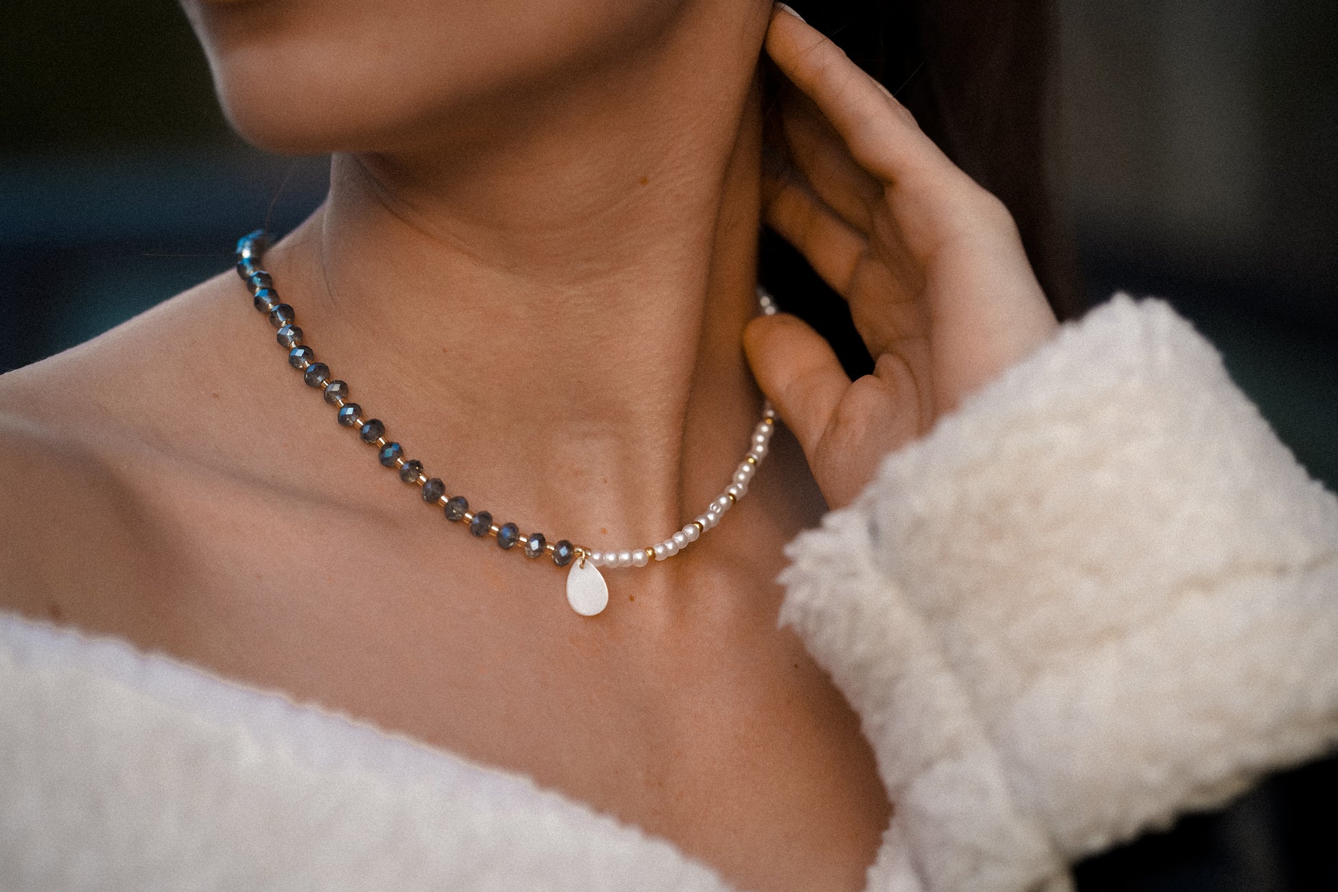 colar em miçangas e madre pérola